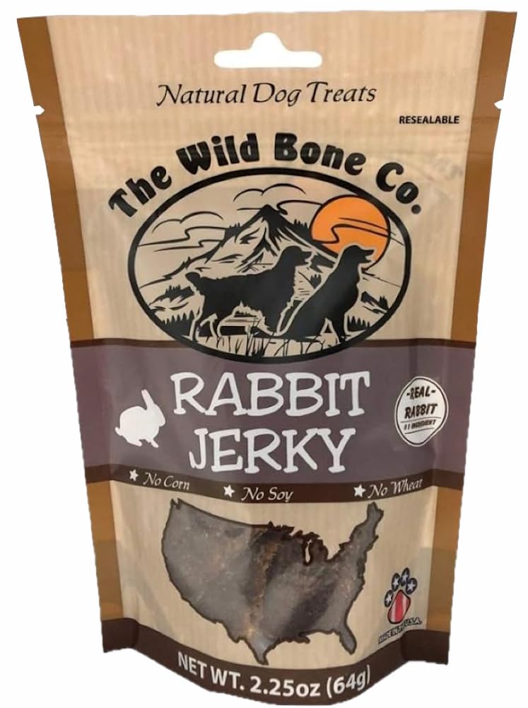 THE WILD BONE CO. (92011) Wild Bone Company Rabbit Jerky Natural Dog Treats, 2.25 Ounces, Made in The USA